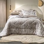 A estampa Paradis Composê traz delicadeza e elegância para o quarto com desenhos de pássaros e folhagens em tons sutis sobre o fundo bege mocha. Confeccionada com enchimento em poliéster thermobonder macio e leve, garante conforto e praticidade no dia a dia. Disponível em edredom, jogo de colcha com porta-travesseiros, jogo de cama completo com lençol superior, inferior e fronhas com viés, além da versão simples com lençol de elástico e fronhas envelope. Um toque sofisticado para transformar sua cama em um refúgio de aconchego.