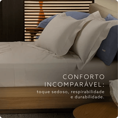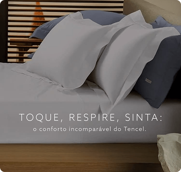 Uma fibra nobre extraída de florestas certificadas que redefine o conceito de conforto. Com caimento leve, toque sedoso e alta respirabilidade, nossa nova linha de Jogos de Cama em Cetim de Tencel une sofisticação, bem-estar e sustentabilidade. Disponível em tons neutros e atemporais, para noites de descanso incomparáveis.